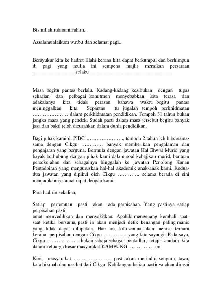 Contoh Ucapan Persaraan Guru By Ra_Sonia764 02 Sep, 2022 Post a Comment Ucapan Persaraan Pengetua Pdf Teks Ucapan Persaraan Pdf Teks Ucapan Wakil Murid Sempena Persaraan Guru Pdf Teks Ucapan Guru Tuan Badan Nak Bersara Pdf Doc Contoh Ucapan Wakil Murid Untuk Majlis Persaraan Sharina Sharina Academia Edu Share No comments for "Contoh Ucapan Persaraan Guru"